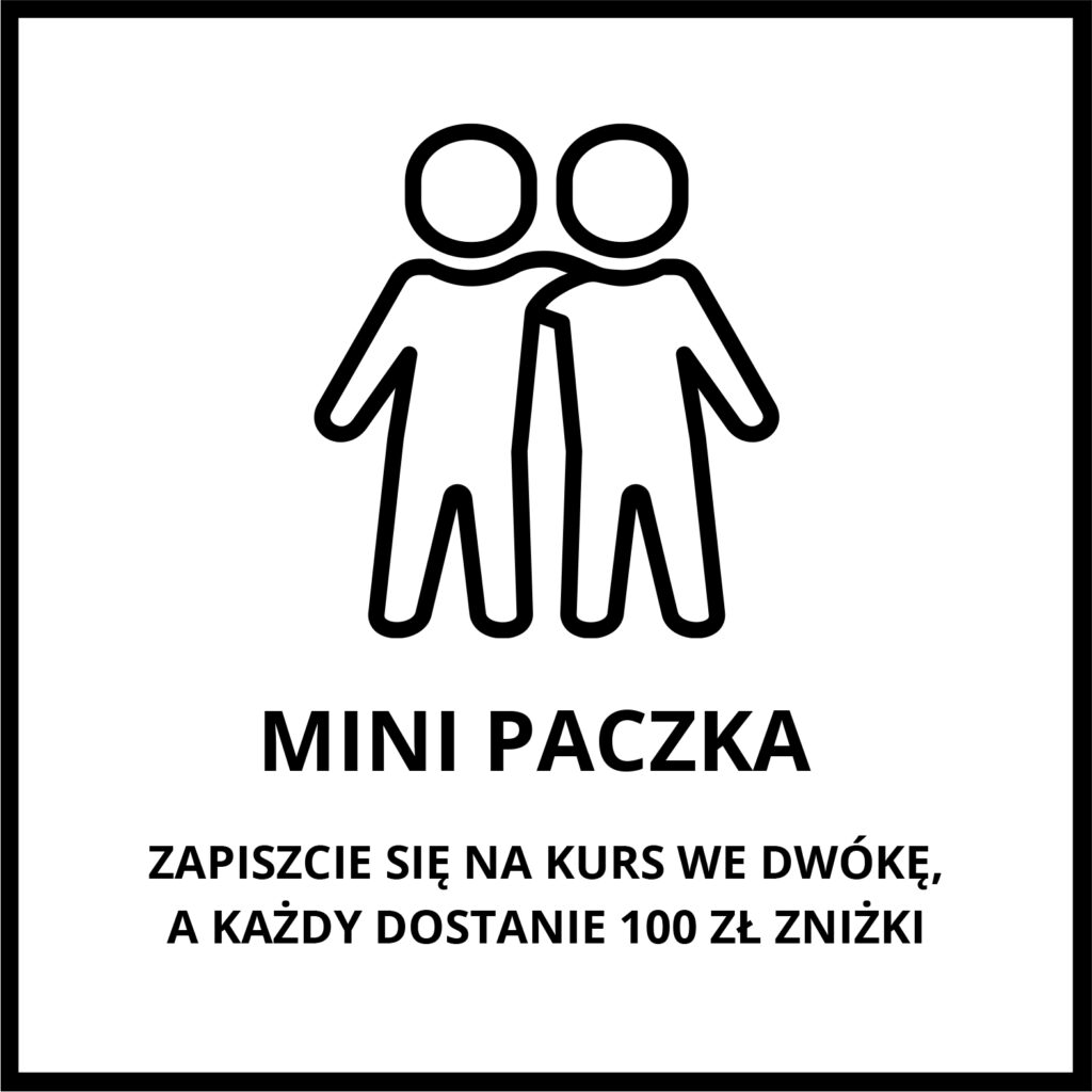 - Minipaczka – jeśli zapiszecie się na kurs razem, każde z Was dostaje 100 zł zniżki